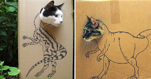 Since we've been staying home it seems as though I have accumulated many cardboard boxes. These boxes are often well-constructed with quality material and can be repurposed for crafts or other functions so naturally I can't throw any away. However when I don't get to using them or putting them away in time they seem to be claimed by my cat. Today I thought we could look at different ways to modify and upcycle cardboard boxes for your cat's pleasure. Firstly a simple under-bed hideaway -or cat bed in a box- can be a wonderful addition to your cat furniture. Or try a fancier version by making it look like an army tank, ice cream truck or a miniature playhouse. You might also like to try making a recycled cardboard kitty pad/cat scratcher. Combine the two concepts and create a laminated cardboard cat igloo! This project is not for the faint of heart but has a multitude of creative possibilities when creating the form for your cat home. Lastly, my personal favorite, you can decorate you're lovely cat box with critter bodies and cut a hole where the head should be just big enough for your cat's head to fit through. Leave the box open and wait for the hilarity to ensue. If you don't have a cat don't fret because here are some photos submitted by quarantined cat and dog owners who use cardboard boxes to turn their pets into dinosaurs! Please feel free to like and share. That's it for now. Have a great day folks. Tune in tomorrow for another great art/craft idea.
